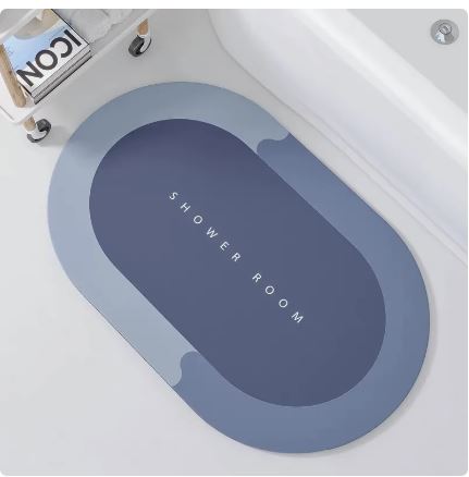 Alfombra de ducha súper absorbente ovalada azul