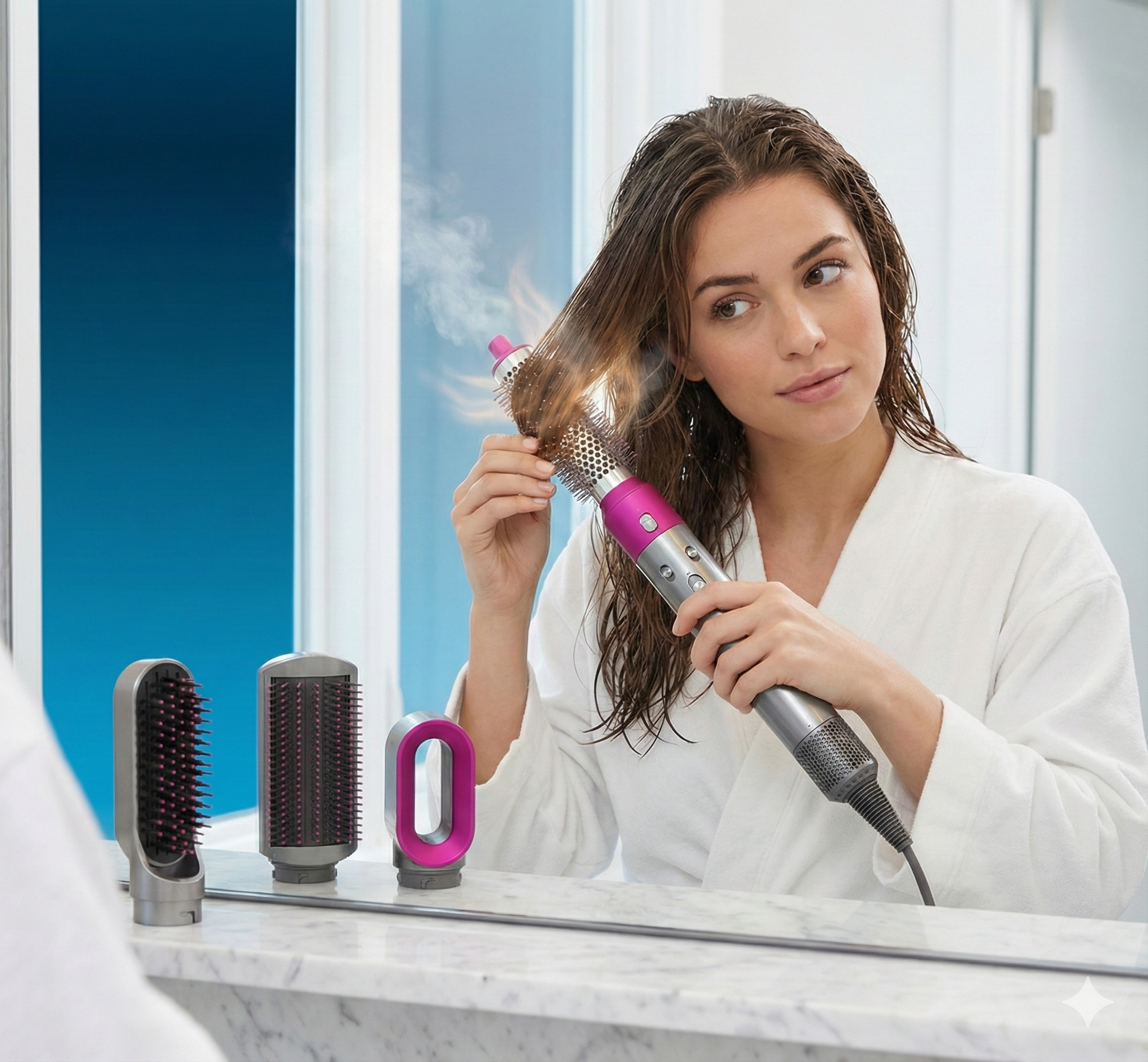 Es un cepillo multifuncional diseñado para secar, alisar, rizar y dar volumen al cabello en un solo dispositivo.